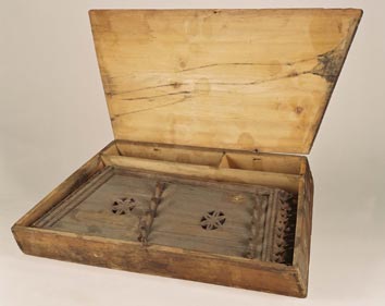 The last detailed example comes from a little later, 1776, but is remarkable because it appears to be almost a surviving form of the Hackbrett portrayed in Virdung's engraving: the overall shape and proportions are very similar, and it has a simple single bridge. Moreover, it has the newer feature of quadruple strings, with the older side-mounting of the tuning-pins, rare after 1600 (fig. 71).