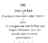 Then, of course, there's the title of the whole work, Il dolcimelo, which might well tempt us to think we'd found a book just about the dulcimer ... but we may sadly suppose that he was simply thinking of a 'sweet sound' in general ...