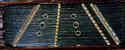 The instrument shown in fig.163 is finely built; beaded to conceal the joints and finished off with black-stained button polish. The oblong shape was only incidental: he had a piano wrest-block, complete, and rather than take all the pins out and have all the trouble of putting them in a new block, he thought he would leave them as they were; however, the angle of each row of pins was perpendicular to the edge of the block, so the external shape had to be oblong. The saddles nevertheless form the usual trapezoid, of course, and to keep the tension on the portion of the strings between the saddles and the pins, he has fixed a heavy metal batten immediately behind each saddle, under which the strings pass.